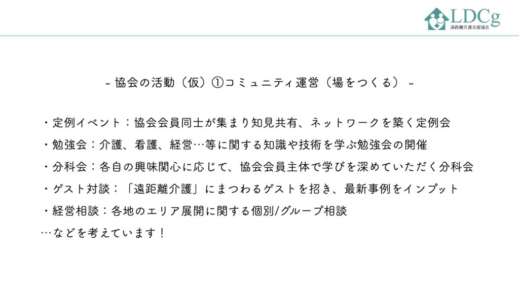 ・インプットトーク「遠距離介護支援協会のビジョンと今後の運営について」